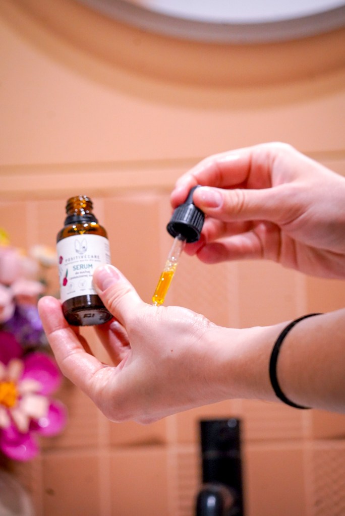 Serum ma oleistą konsystencję. Bardzo ładnie się wchłania. My odczekałyśmy chwilę, zanim poszłyśmy pod prysznic. Tak jak z olejkami do włosów, dałyśmy mu czas na wniknięcie w głąb włosa.