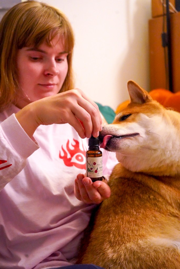 Kilka kropel rozmasowałyśmy w rękach i intensywnie wmasowałyśmy go w sierść. Sabrina była super zainteresowana, węszyła i lizała nasze ręce. Więc smak olejku pewnie też przypadł jej do gustu 😅