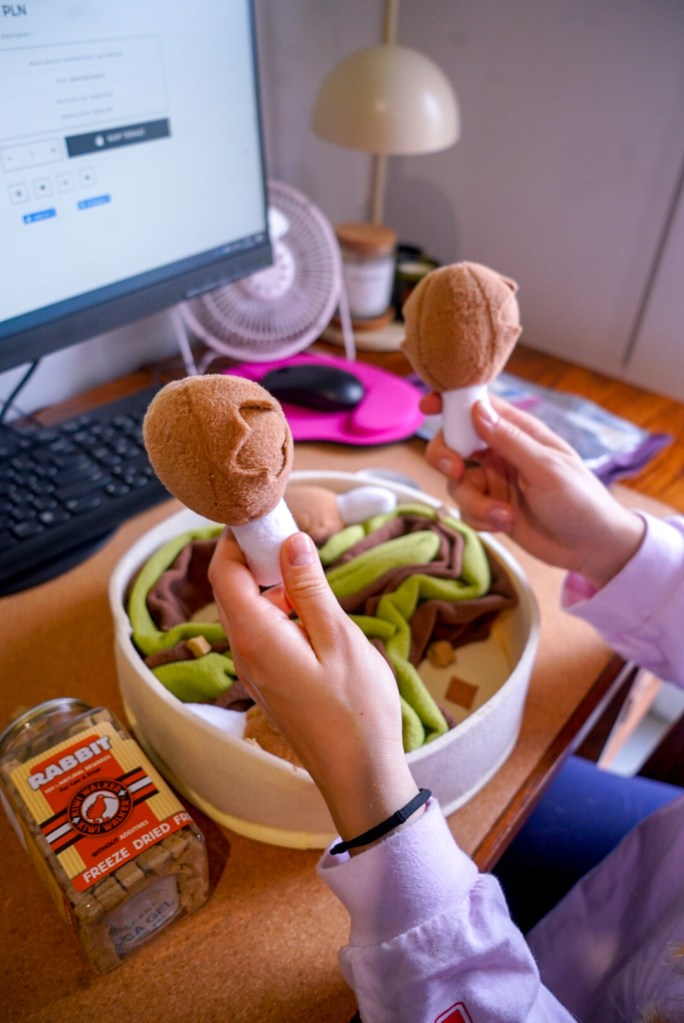 🧡 Najpiękniejsze zabawki do węszenia od ZIPPYPAWS i maty od Dolemi – my wybrałyśmy do przetestowania właśnie matę węchową Pycha Micha, która jest cudowna! Trudna i bardzo interaktywne – udka z kurczaka są przytwierdzone, mają w środku piszczałkę i sakiewki na smaczki!