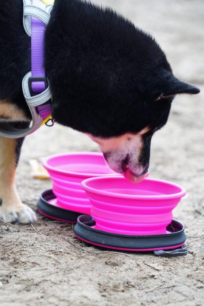 Przyznam, że nie miałyśmy składanych misek turystycznych, bo korzystałyśmy do tej pory z butelek z poidełkiem. Co jest super wygodne, ale też trochę ograniczające na dłuższych wycieczkach.