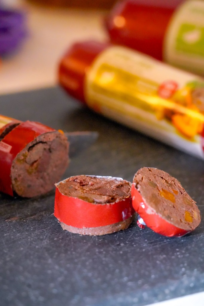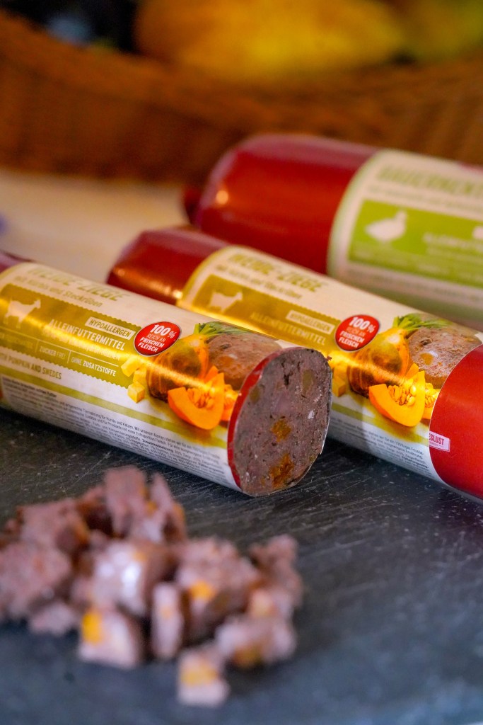 Dla psa kiełbasa? TAK! Kiełbasy Meatlove od Fleischeslust to pełnowartościowa karma mokra, która będzie odpowiednia również dla piesków o wrażliwym przewodzie pokarmowym, na diecie eliminacyjnej oraz tych z nadwagą (Meatlove transparentnie podaje wartości węglowodanów już przeliczone, więc można łatwiej zbilansować posiłek).