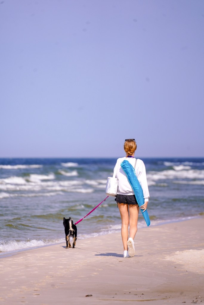 Na spacerki zawsze zabieramy ze sobą wodę – szczególnie wiosną i latem. Pieski bardzo szybko mogą się nagrzewać, a nie zawsze mają na tyle samokontroli, aby przerwać zabawę i regulować temperaturę ciała. U niektórych ras dochodzi nawet do hiperwentylacji, zadyszki, albo i nawet gorzej… To NA WAS leży odpowiedzialność regulacji aktywności pieska. Gdy zobaczycie sygnały hiperwentylacji, czy przegrzania, często może to być już stan krytyczny (!).