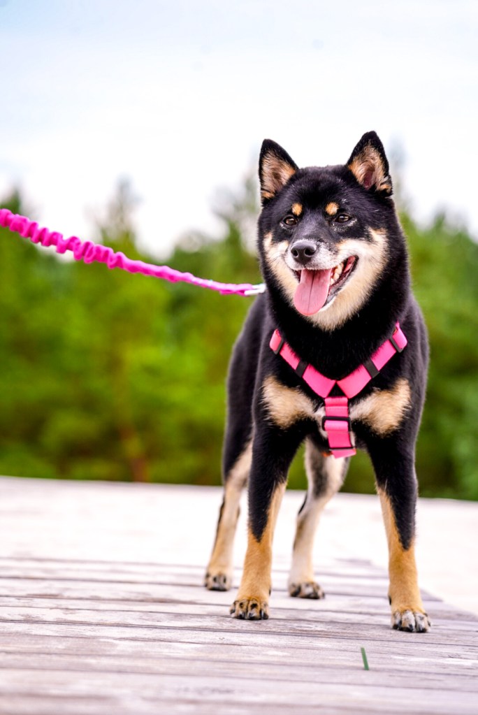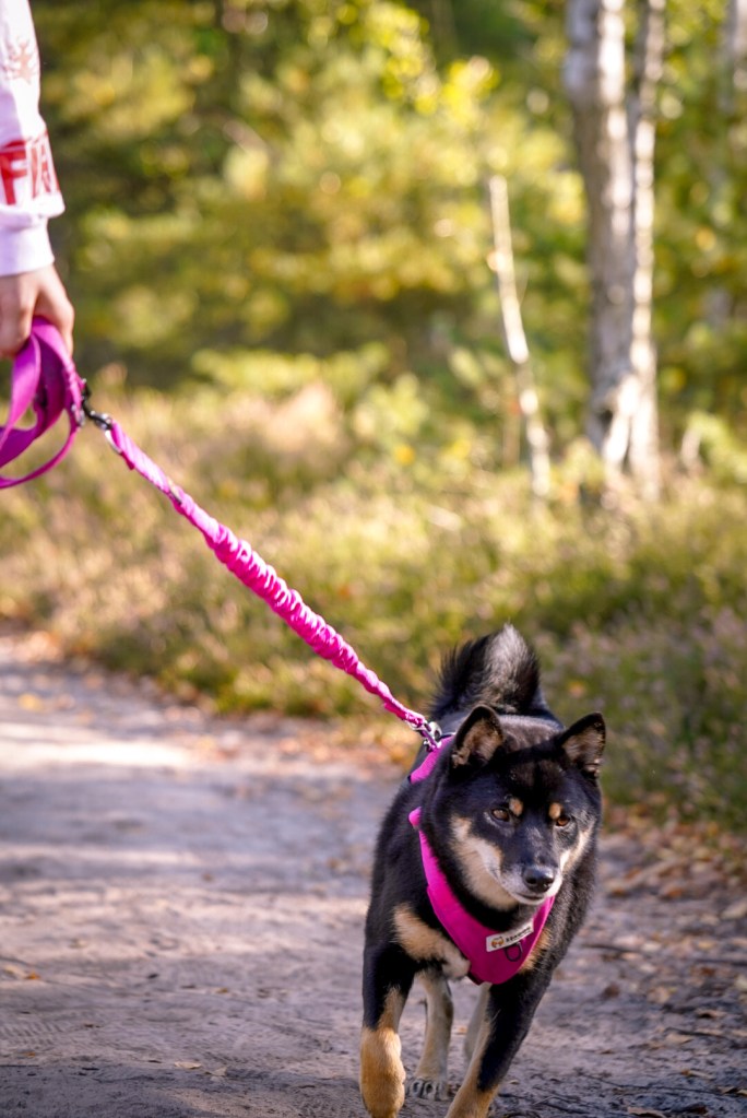 My na obroży zaczynałyśmy chodzenie ze smyczą. Wybrałyśmy wtedy taką półzaciskową / martingale, która daje dużo swobody, ale w razie potrzeby można zadziałać motywująco. Obroża nie sprawdzi się też u piesków z małą główką vs reszta ciała. Shiby z łatwością wydostaną się z każdej obroży!