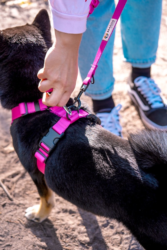 Więc zostałyśmy przy szelkach. Nie podduszamy psa, tylko lekko pociągając, dajemy mu sygnały. Przy wyborze szelek zwracamy uwagę, żeby nie uciskały i nie ograniczały ruchu stawów. Nie polecamy więc szelek „norweskich”, mimo, że same z nich korzystałyśmy, bo super łatwo się zakładają.