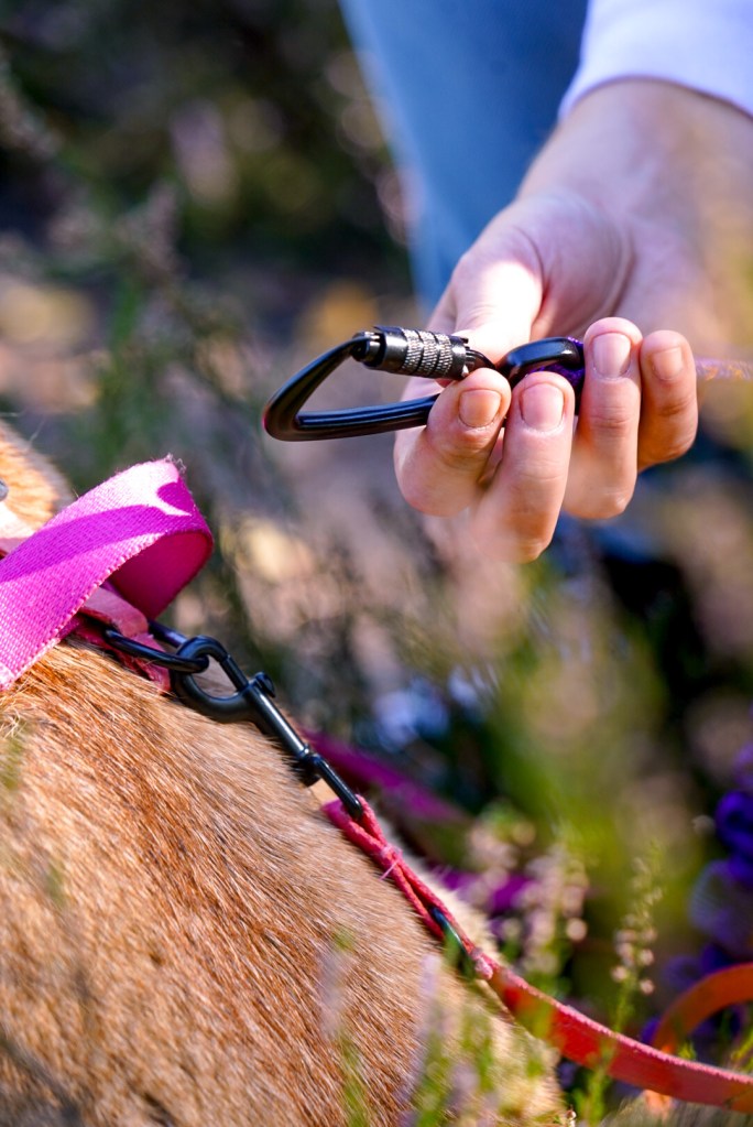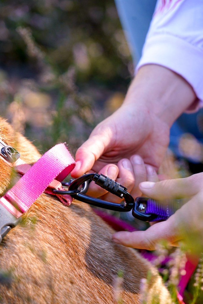 Mając dwa pieski super sprawdza nam się też dwójnik. To 2 smycze, połączone ze sobą mechanizmem i opatrzone jedną rączką. Polecamy Wam go na spacery higieniczne lub/i kontrolowane (np. w mieście). Na długie spacery eksplorujące zostałabym ze smyczą 4 m, żeby dać obu pieskom przestrzeń.