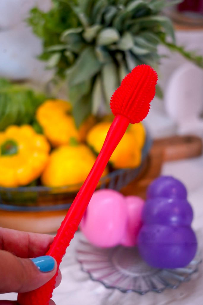 Pamiętajcie, że takie gryzaki powinny być podawane zawsze przy Waszym nadzorze. Raczej unikamy zostawiania gryzaków, jako pocieszki, gdy wychodzimy z domu. Umarłybyśmy ze stresu, bo ryzyko zadławienia się jest zawsze. Jak z dzieckiem 🤷♀️